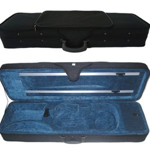 Čvrsti kofer za violinu sa pregradama četvrtastog oblika i kaiševima za nošenje na leđa.